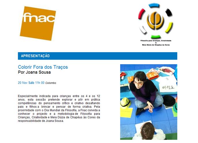 Esse mesmo desafio será lançado pela Joana Sousa, na FNAC Colombo, no próximo dia 20 de Novembro, pelas 11h, com a realização de uma oficina para pais e filhos (dos 4 aos 12 anos).