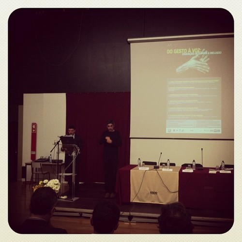 a conferência contou com a presença de várias pessoas, em representação de entidades que trabalham na área da educação dos surdos ou que representam associações de pais e amigos. a reter o discurso emocionado do André Couto, presidente da AFAS ( Associação das Famílias e Amigos dos Surdos ) que partilhou connosco um percurso de pai da M, uma criança surda, a quem o primeiro médico que diagnosticou a surdez traçou o seguinte cenário «os surdos não atingem níveis superiores de inteligência». acontece que a M entrou recentemente para o curso de Medicina (parabéns, M). a afirmação desse médico encerra em si imensos preconceitos: que a surdez condiciona a aprendizagem e limita o sucesso, que a inteligência se reduz ao QI e por aí fora.