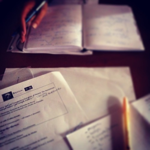 eu e a Raquel Costa - membros da Comissão Científica do IV sentir pensamentos | pensar sentidos, que vai acontecer em Novembro, na Universidade do Minho, aproveitamos a ocasião para colocar ideias em ordem e para uma primeira apreciação dos textos candidatos às comunicações livres.
