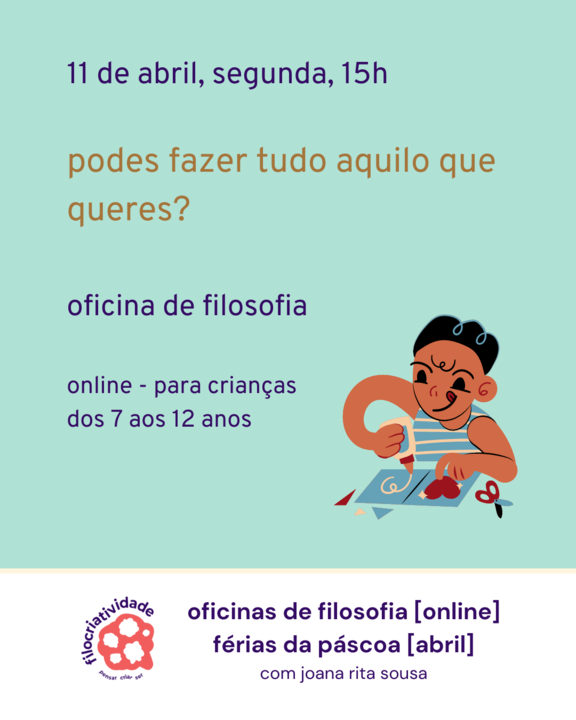 a experiência das oficinas online tem permitido levar a filosofia junto de crianças que estão distantes umas das outras, aproximando os seus pensamentos e criando diálogo. que bela aventura!