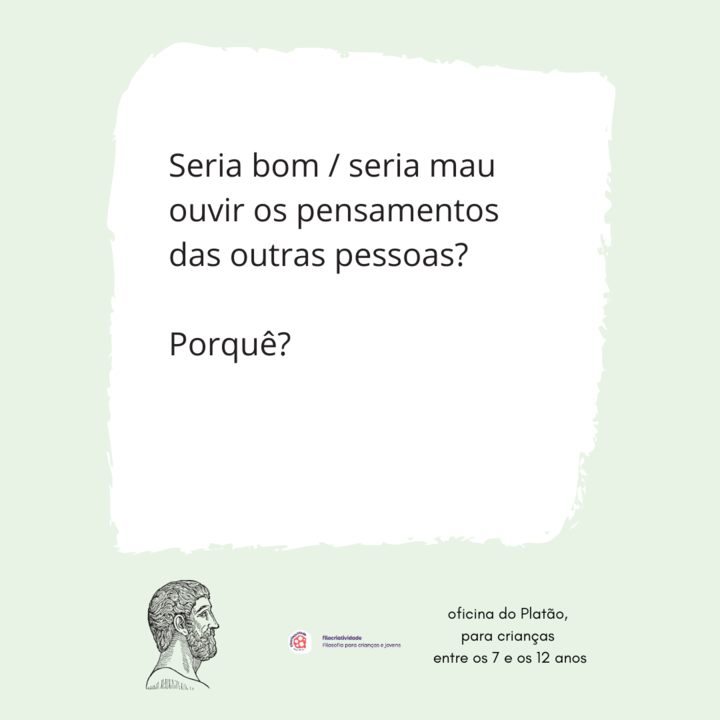 uma curiosidade: quando escrevi a ideia "ouvir os pensamentos dos outros" pensei na possibilidade de ouvirmos o que cada um pensa, sem necessidade de falarmos. como se fosse possível "espiar" os pensamentos das outras pessoas. um dos participantes fez uma leitura muito dentro do que se pretende no diálogo filosófico: "é bom ouvir os pensamentos dos outros, para sabermos o que pensam e podermos conversar com eles sobre isso." foi a única pessoa a interpretar dessa forma o que nos fez repensar nas ideias que estávamos a considerar.
